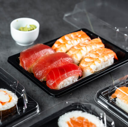 The standard range we offer to food packaging companies includes clear, sealed, and microwave safe packaging suitable for dry and wet products from deli containers to party packs.