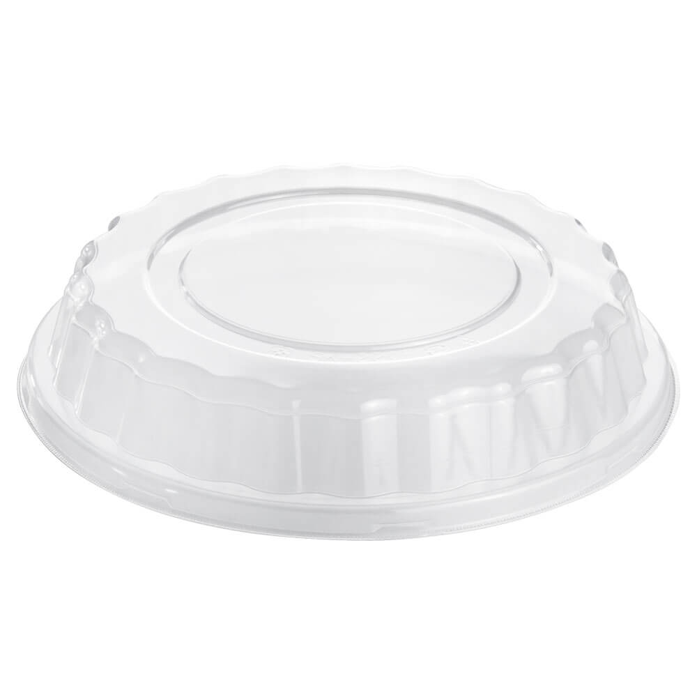Clear OPS domed lid for takeout and other hot foods. High quality and sturdy structural design with excellent product visibility and large capacity.