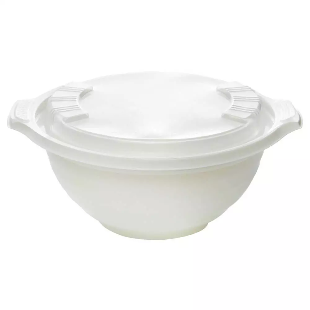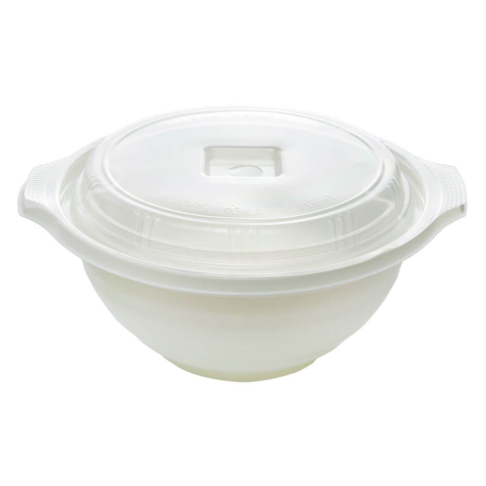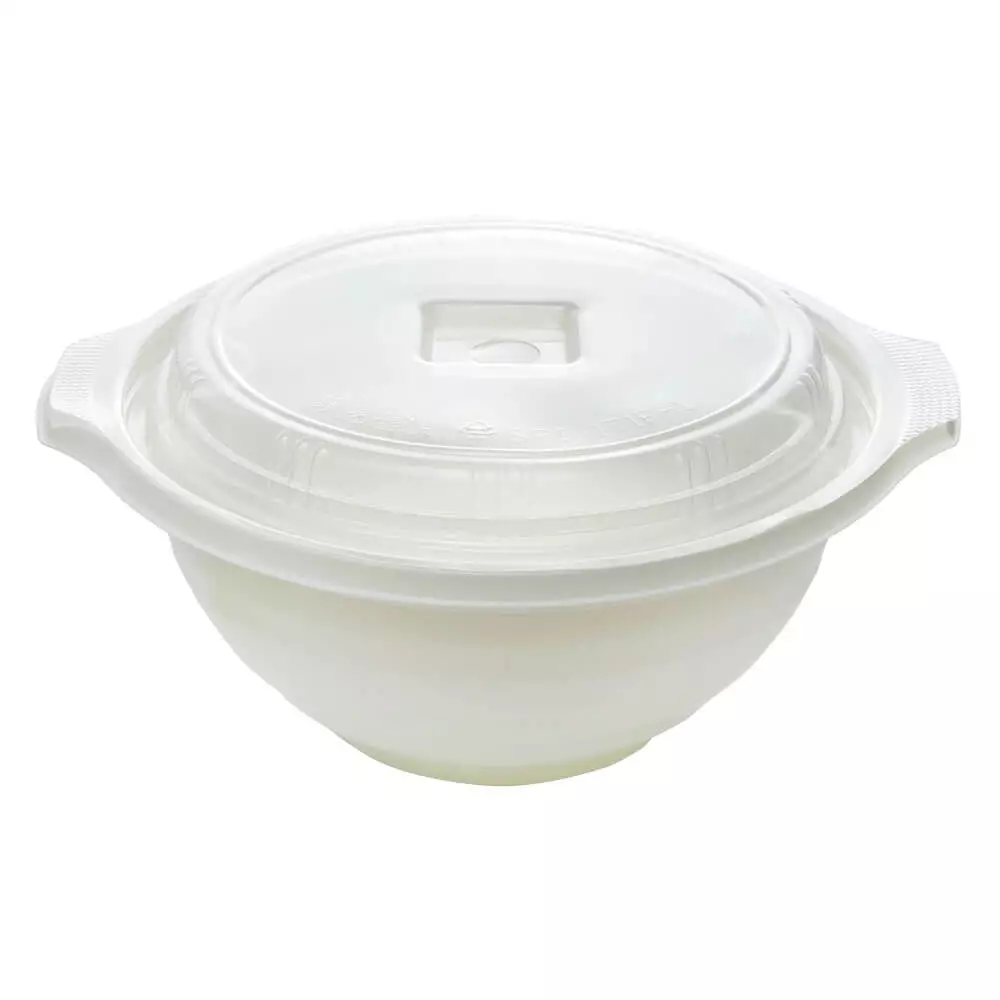 Microwave safe PP large capacity bowl with ultra clear or translucent lid for takeout and other hot foods. High quality and sturdy structural design with minimal material use.