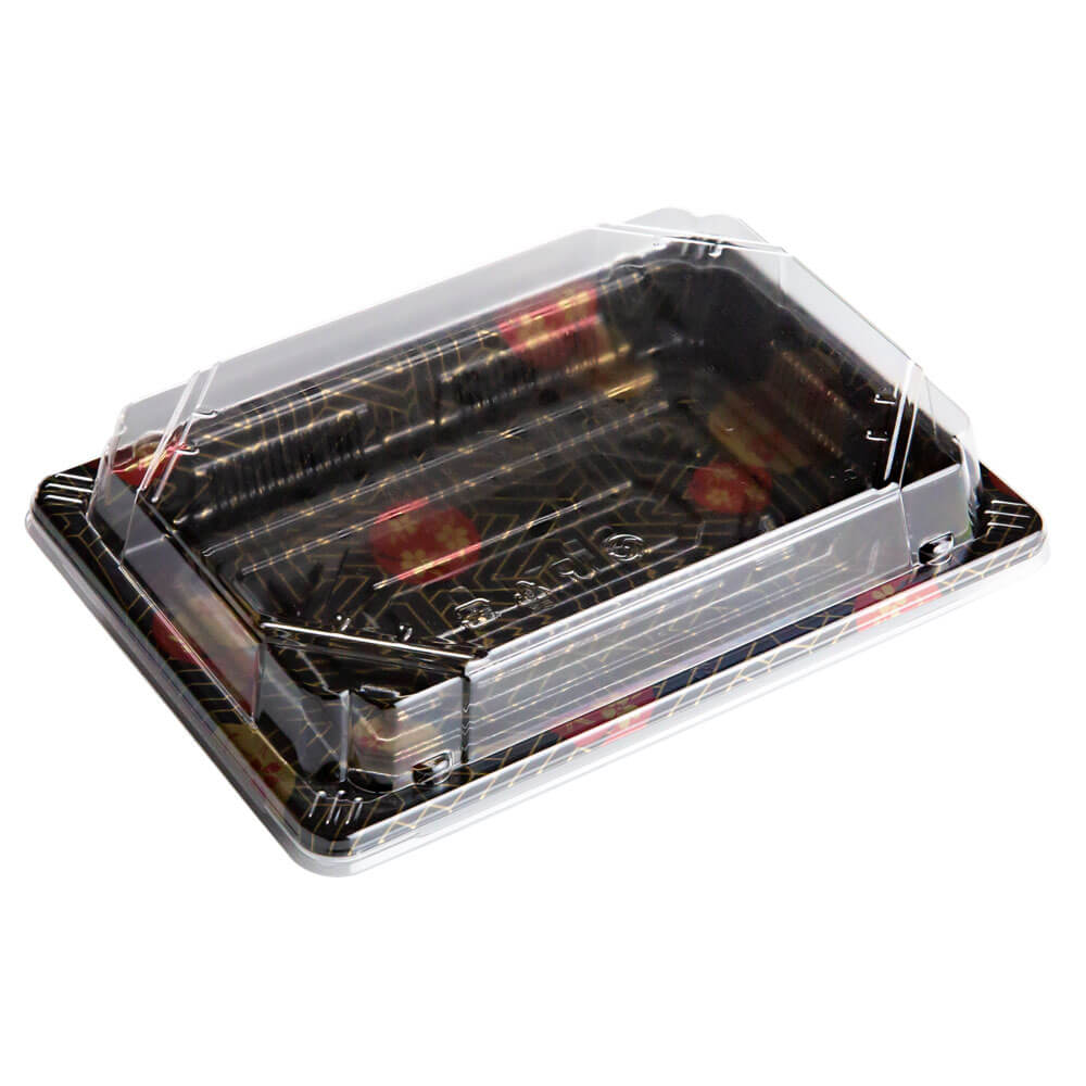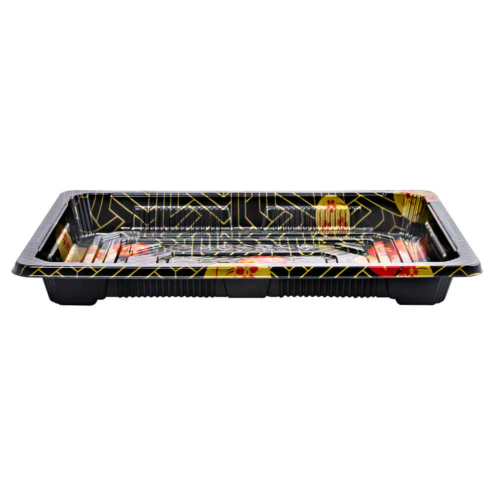 Sushi tray with Japanese pattern. Excellent durability and minimized stacking design.