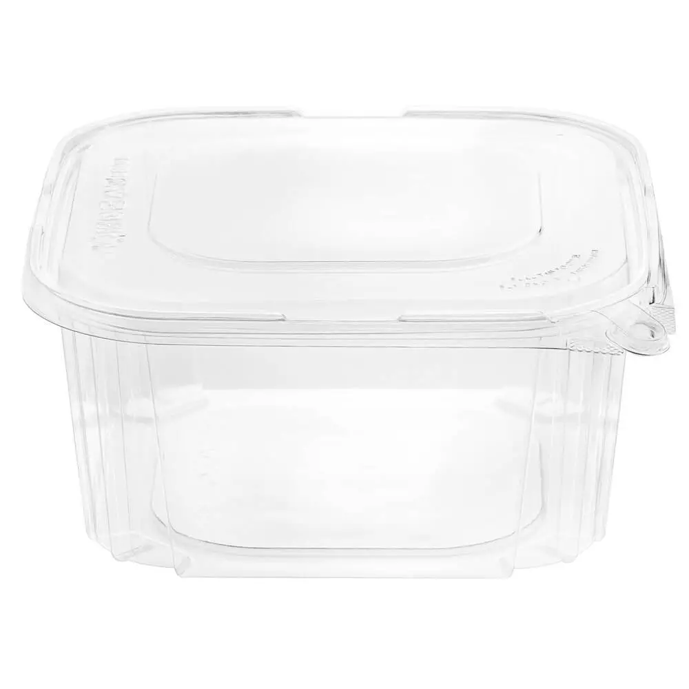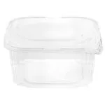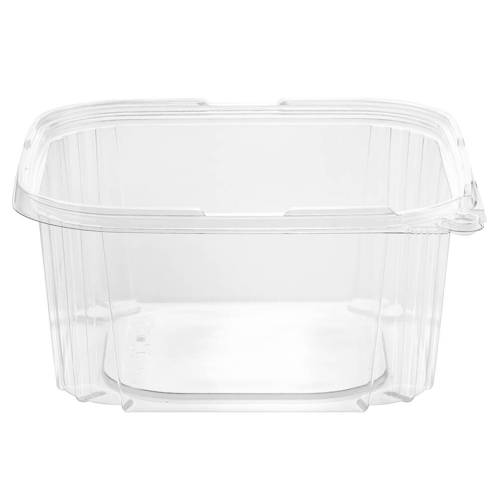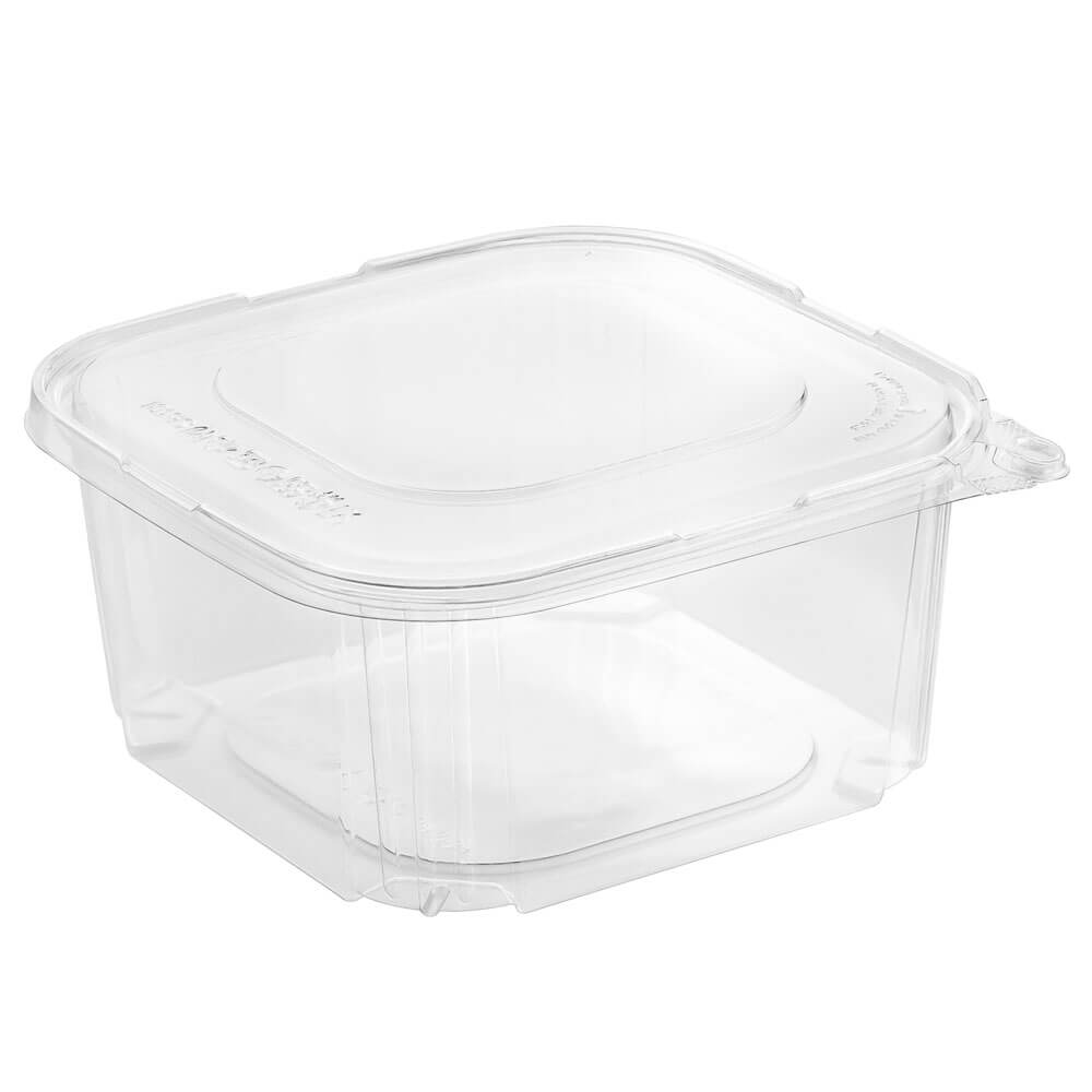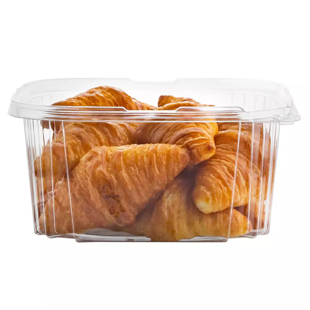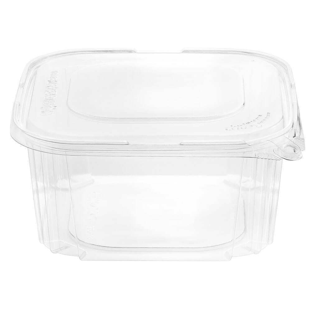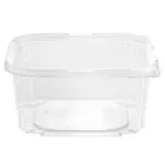 PCR Clear RPET two-piece tamper evident container with no tear off strip. This uses our patented anti tamper design. Flat stackable lid design for easier shelf / refridgerator storage. High capacity design for larger items such as croissants, bagels, danish and other pastries. Flat lid also provides excellent product visibility.