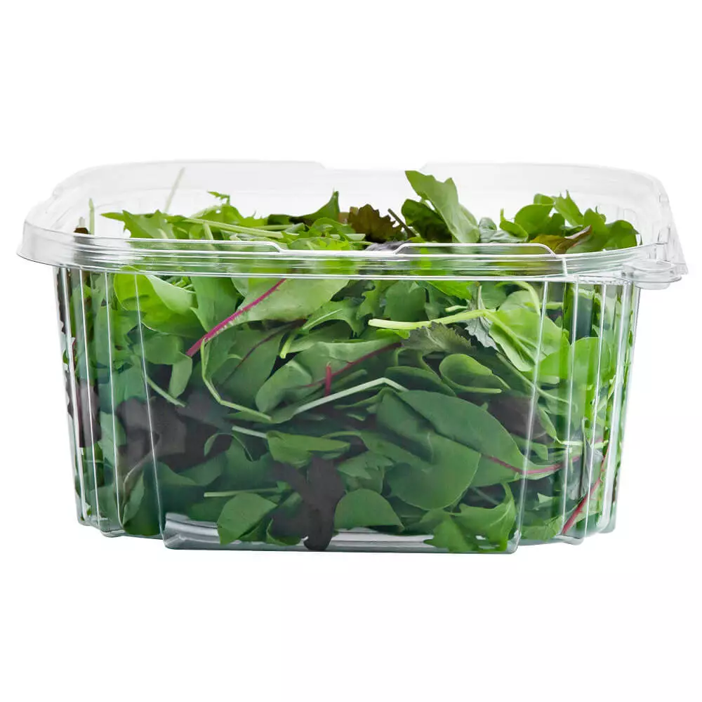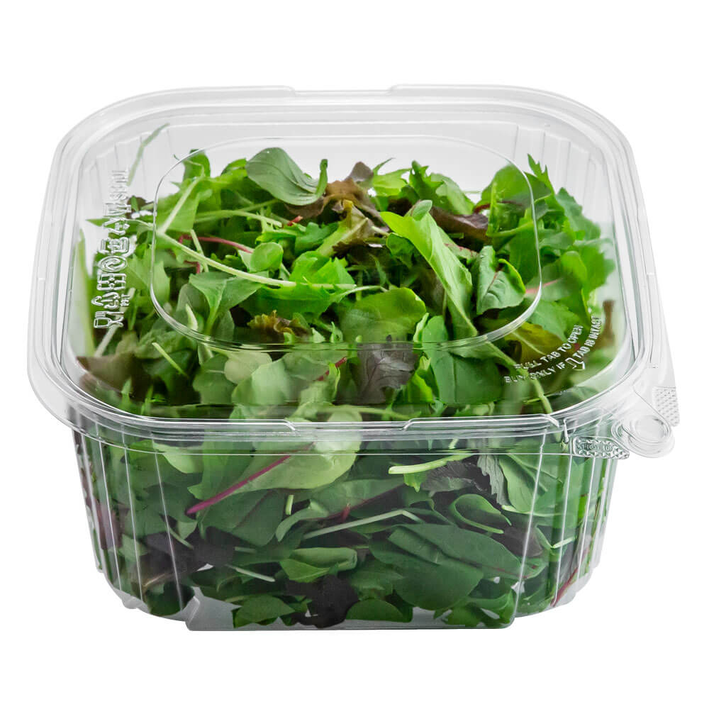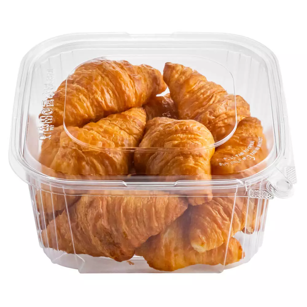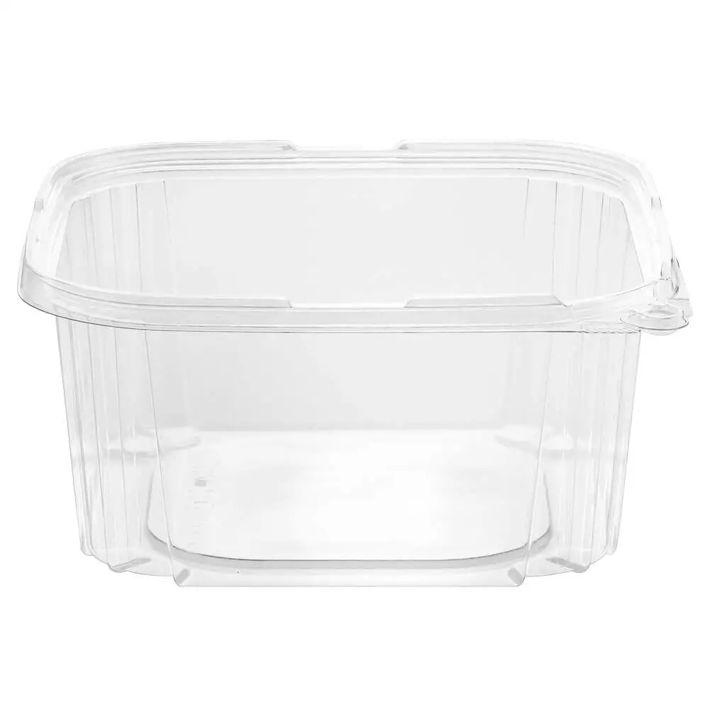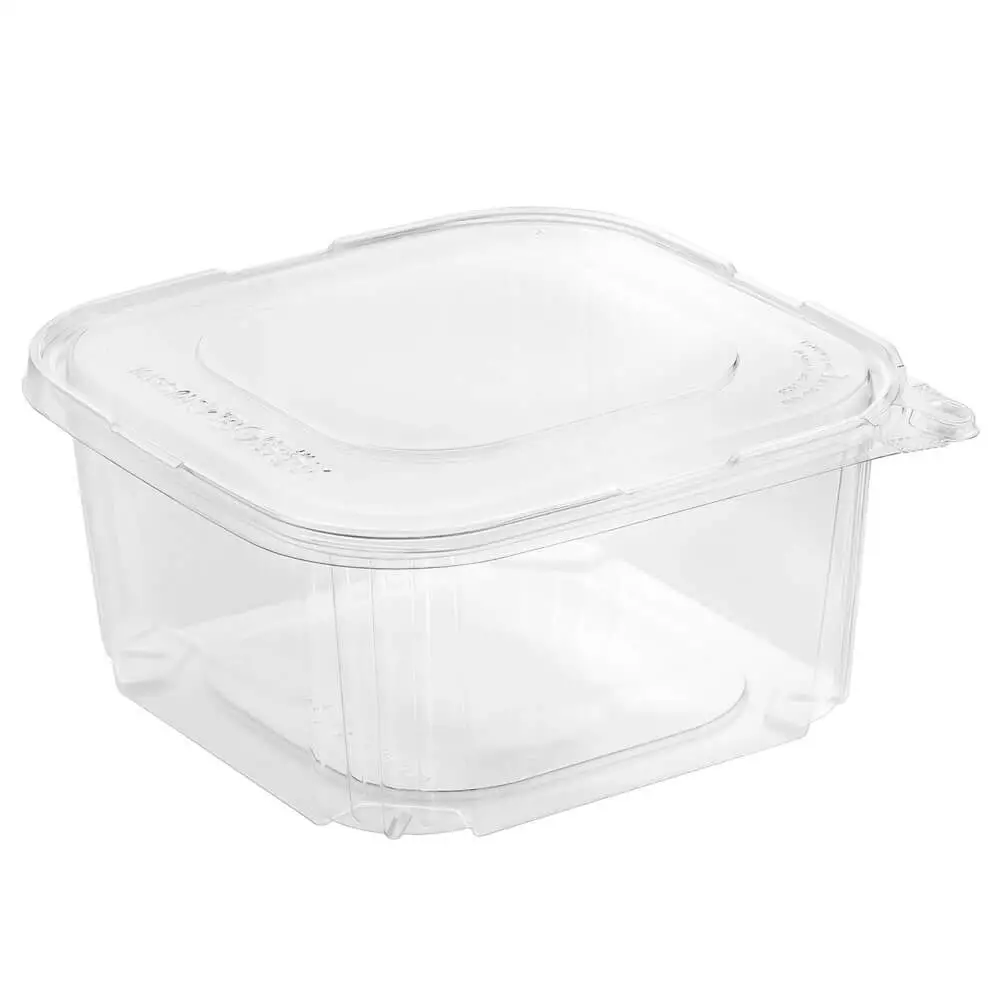 PCR Clear RPET two-piece tamper evident container with no tear off strip. This uses our patented anti tamper design. Flat stackable lid design for easier shelf / refridgerator storage. High capacity design for larger items such as croissants, bagels, danish and other pastries. Flat lid also provides excellent product visibility.