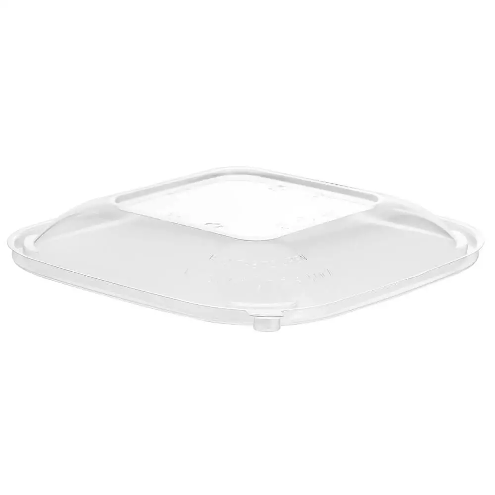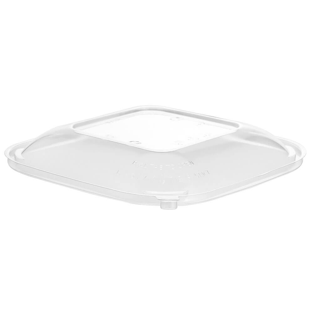 PCR Clear RPET two-piece square bowl safety pack container lid is suitable for deli products as well as other fresh fruits and vegetables. The domed lid provides excellent product visibility whilst still maintaining product security.
