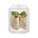 The PCR Clear RPET tamper evident burrito and sandwich box with no tear off strip features our patented anti-tamper design. This user-friendly product also advocates sustainability.