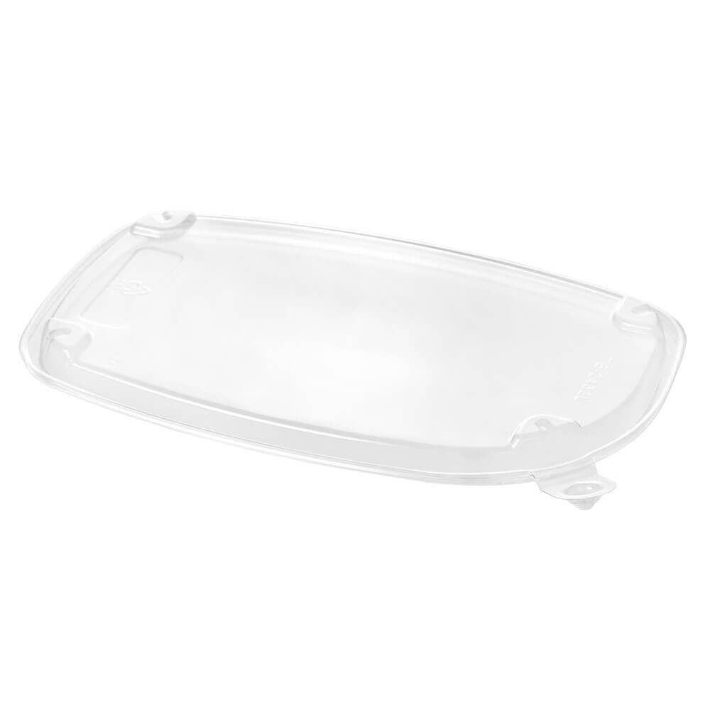 PCR Clear RPET two-piece rectangular safety pack container is suitable for bento box or other light fast foods and meals. With its flat lid can be easily stacked for cold storage. Transparent and black bases are available. Lid is crystal clear for excellent product visibility. Black version is especially popular in business settings for takeout lunches.