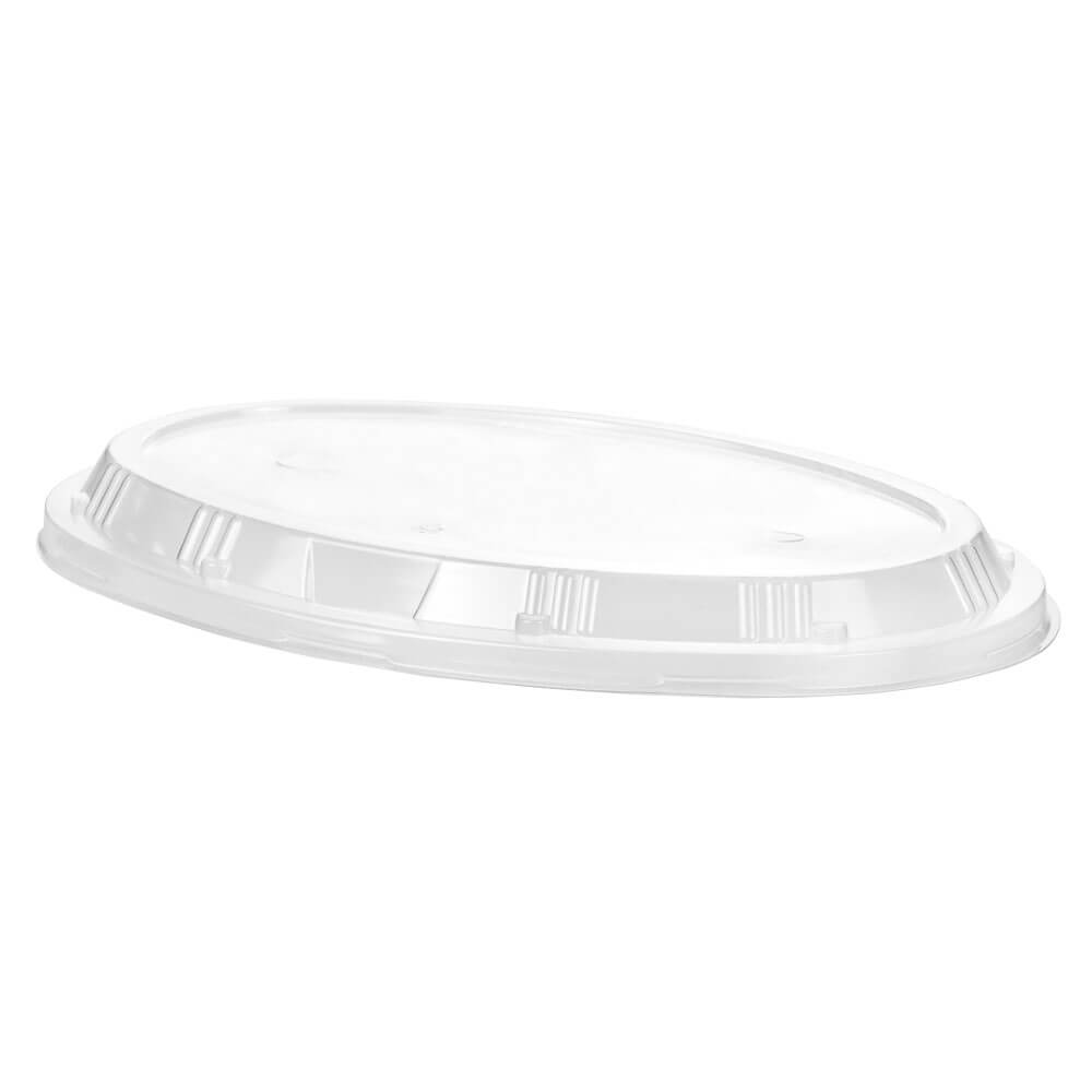 Ultra clear PP anti fog lid for oval tray. Excellent durability and minimal stacking design.
